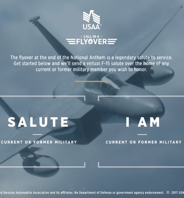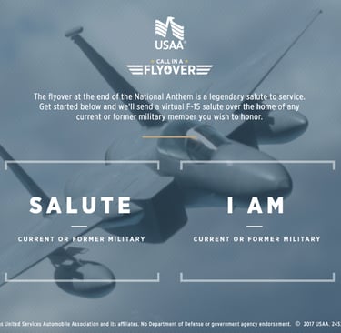 usaaflyover.com was the world's first virtual flyover. The campaign reached over 143M and received 2.5x higher brand awareness and 3.2x higher favorability than Snapchat norm.